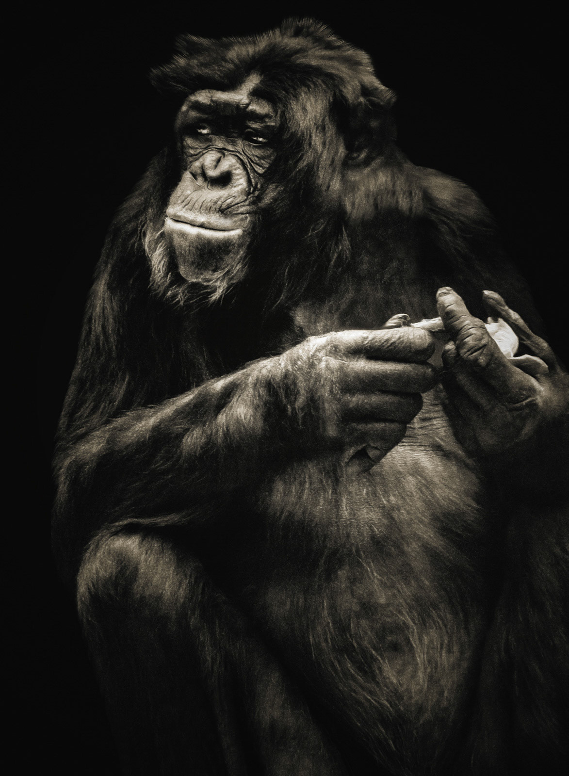 This monkey is dreaming for a better world ... for sure. Just a sad expression...